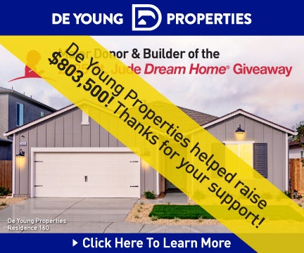 De Young Properties has served as the proud builder and major donor of the Central Valley St. Jude Dream Home since 2007, raising over $16.5 million to date to benefit St. Jude Children’s Research Hospital. Whether raising funds for children, building a home for a local hero or supporting local schools, non-profits, and community groups, De Young gives dreams and hope to our community.